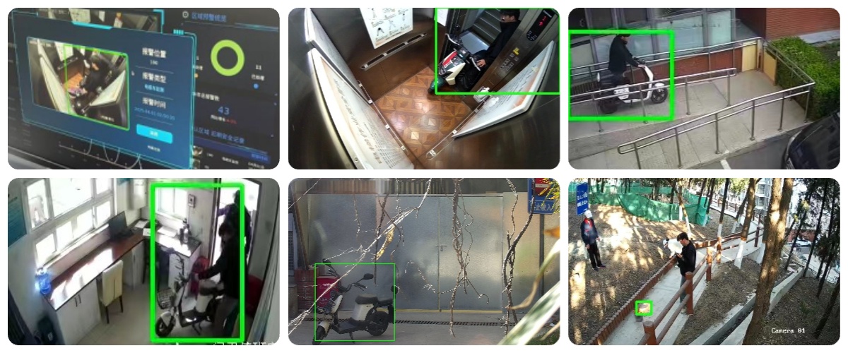 • 电动车识别:全天候检测算法,并且联动电梯终端,实现电瓶车进入电梯无法关门的设置;